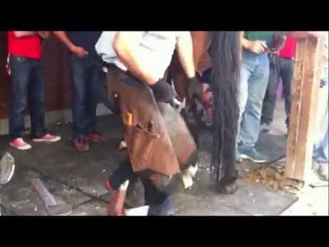 Intervento di Carlo Montagna al Corso / Convegno GRATUITO di Mascalcia organizzato da Cattafesta & C. e Il Portale del Cavallo – 5 Luglio, Trezzo sull’Adda. Il ferro utilizzato è un ferro di cavallo ammortizzante Footall