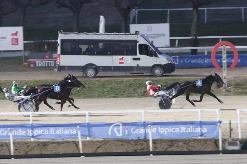 Nel Premio Zooster Nice faceva felice la punta il giocato Duca As: il cavallo allenato da Giuseppe Schettino e guidato da Luca doveva affrontare un oneroso percorso all’esterno scoperto, ma sull’errore all’ingresso dell’ultima curva di Camionst (che stava comunque sopravanzando) passava e chiudeva i conti sfuggendo a media di 1.13.6 a Cabalista, con Uramaki Lux terzo.