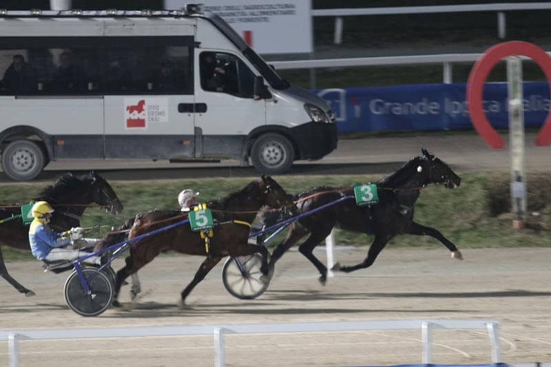 Infrasettimanale all’Ippodromo Snai San Siro di Milano per la 3^ giornata stagionale di trotto con un mercoledì 8 gennaio che ha visto le prove con maggiore montepremi in chiusura di riunione: prima con i neo 4 anni protagonisti per il Premio Pantera del Pino, una stringata condizionata sui 1.600 metri che vedeva solo quattro soggetti al via dopo la defezione di Filly Mail. Fuoco degli Dei vinceva nettamente il match preventivato con Futuro D’Amore: grazie alla maggiore velocità iniziale, il cavallo di Mauro Baroncini (Marco Stefani in cabina di regia) andava comodo al comando mettendo così da subito una seria ipoteca sul discorso vittoria e costringendo il rivale a industriarsi all’esterno: l’allievo di Bondo ci provava comunque con determinazione non concedendo respiro al battistrada (primo chilometro in 1.12.1) ma sull’ultima curva doveva allentare la presa e Fuoco degli Dei (oggi molto… caldo) nei 400 metri finali, si staccava per emergere solitario a media di 1.12.1, nuovo personale. Ottima prestazione per un soggetto che, come spiegato da Marco Stefani, ha sempre avuto la fiducia del suo team e ora sembra stia tornando sui migliori livelli. Futuro D’Amore ci ha provato con coraggio, lo schema gli è stato contrario ma il distacco dal vincitore è stato evidente. Sfortunata Favola Ek, fallosa all’imbocco dell’ultima curva quando provava a liberarsi dalla scia del vincitore per sferrare l’attacco: la cavalla di Claus Holmann sembrava carica e almeno il secondo posto probabilmente non le sarebbe sfuggito. First Lady Men ha approfittato del “regalo” per guadagnarsi la pagnotta con la terza moneta.