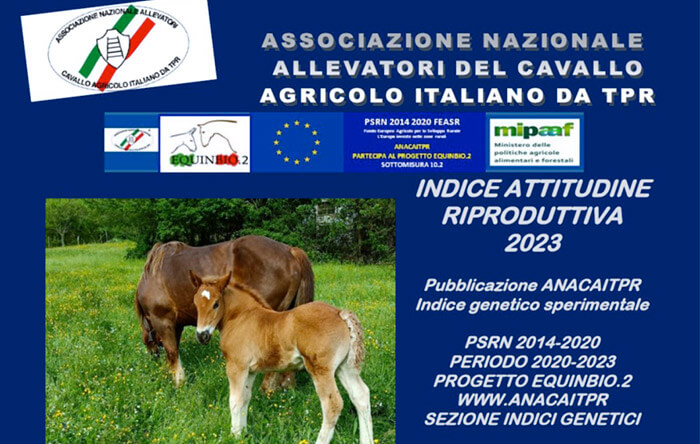 L’INDICE DI ATTITUDINE RIPRODUTTIVA (IAR) è unastima del potenziale/capacità genetica della fattrice in termini riproduttivi.Il dato considerato è, in sostanza, IL NUMERO DIPULEDRI NATI IN CARRIERA FINO AL 6° EVENTO RIPRODUTTIVO (CONSIDERANDO ALMENO 3 EVENTI RIPRODUTTIVI REGISTRATI PER CIASCUNA FATTRICE).L’IAR rientra nel Progetto PSRN di ANACAITPR (PSRN 2020/2023FEASR Sottomisura 10.2 Progetto di comparto: EQUINBIO.2).