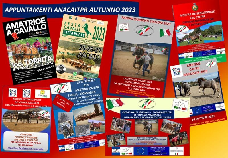 Nelle medesime date, al momento di scrivere, si sta elaborando la presenza del Caitpr alla Mostra Nazionale del Cavallo di Città di Castello. Un appuntamento molto noto che si sta riproponendo e che si auspica ripercorra le orme della storica vetrina umbra che era riuscita a crearsi un importante spazio anche a livello nazionale.