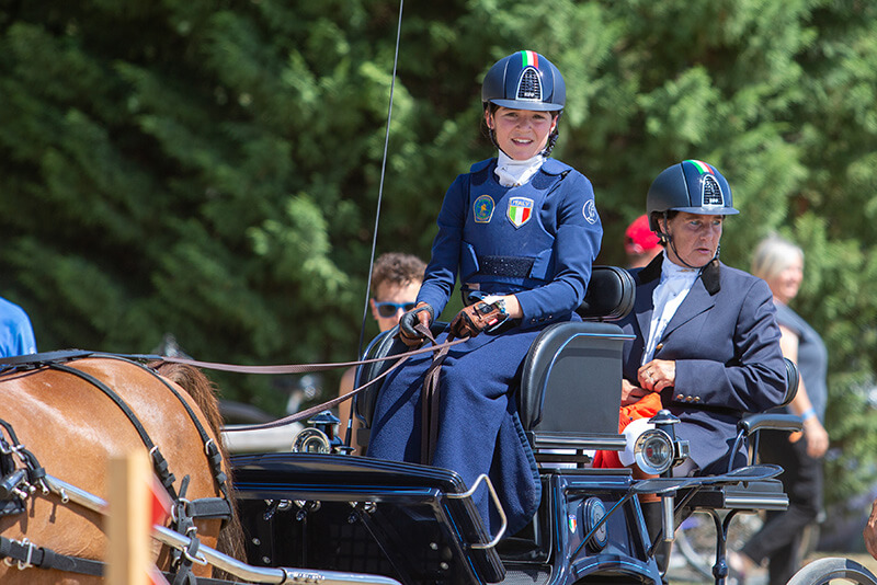 Quinta dopo il test di dressage, è infatti passata al secondo posto dopo la maratona portata a termine con la seconda miglior prestazione, per poi balzare in testa alla classifica grazie alla prova conclusiva dei coni chiusa, anche questa, con il secondo miglior parziale.