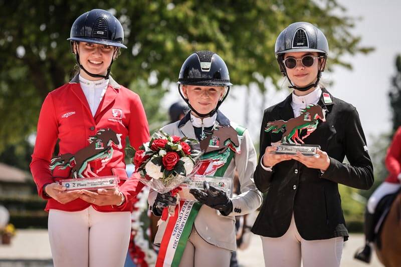 Children Ancora un podio tutto al femminile per il Gran Premio Children. Disputatasi su una gara 1.30m, la competizione si è conclusa a favore dell’olandese Mienie Vos che in sella a Sire De Beau Soleil ha fatto registrare il doppio netto più veloce della categoria (0/0 nel tempo di 37,81 secondi). Svizzera e Italia si sono contese il secondo ed il terzo posto del podio. L’elvetica Léonie Alessandra Pelloni con Jarrabella TS (0/0 nel tempo di 40,48 secondi), in virtù di un barrare leggermente più veloce, ha battuto di un soffio il binomio azzurro composto da Priscilla Giussani e Quarrycrest Reflection (0/0 nel tempo di 40,54 secondi).
