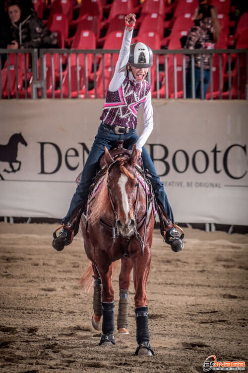 Martina e Commanders Blue erano già stati protagonisti lo scorso maggio, sempre a Cremona e durante il recupero dei Futurity 2020, nella prima edizione della Coppa Italia ParaReining Fise. La giovane amazzone, che è alla sua seconda stagione di gare, monta con Serena Bertelli, tecnico Federale di II livello Reining e ParaReining nonché coordinatrice del Reining Pony lombardo. Ha acquistato la brava Commanders Blue (dall’Nrha World Champion Spat A Blue per Commanders Chic), all’inizio dello scorso anno e con lei ha dovuto lavorare a lungo e duramente prima di raggiungere l’attuale ottimo insieme. Martina puntava già da maggio alle competizioni World Para Reining, e c’è da scommettere che questa ulteriore conferma le abbia dato lo sprint che le occorre per raggiungere l’obiettivo.
