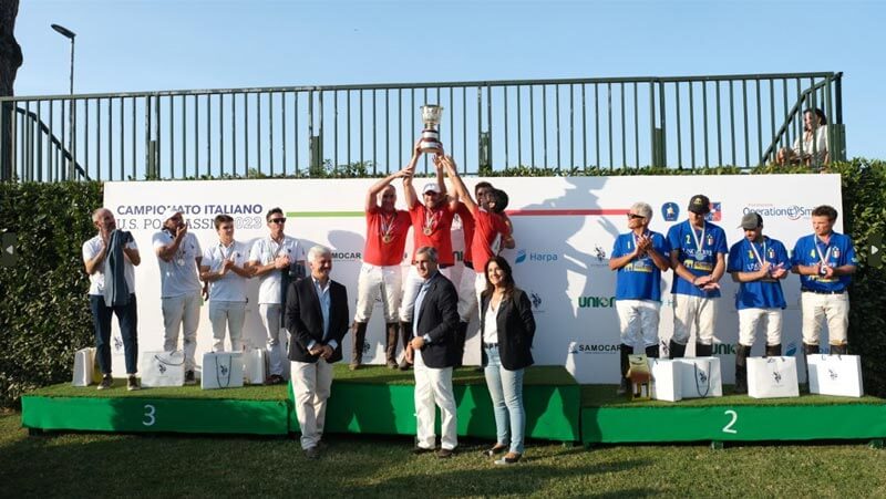 Lo scudetto è dell’Harpa Polo Club. Con l’8-7 ai campioni in carica dell’UnoAerre Acquedotto Romano, sono stati Fabrizio Facello, Therence Cusmano, Bautista Fanelli e Oscar Mancini a cucirsi il tricolore sulle maglie. Una finale tiratissima, che ha visto UnoAerre rimontare uno svantaggio iniziale di cinque gol, senza però riuscire a completare la rimonta nonostante i 21 gol complessivi del capocannoniere Ignacio Kennedy, stella argentina (4 hp). Le finali del campionato italiano U.S. Polo Assn. 2023, disputate al Roma Polo Club, sono state uno spettacolo, davanti a circa 1000 tra appassionati e curiosi in una giornata che ha unito sport e solidarietà.