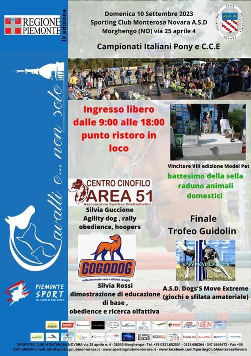 Il Presidente Notaio Claudio Limontini, esprime la felicità di “ripartire con le iniziative pubbliche allo Sporting Club Monterosa. Ancora una volta una occasione imperdibile per festeggiare insieme ai nostri amici pelosi, da sempre tra i principali compagni dell’uomo. Per questo weekend, lo sport vedrà in gara i più piccoli con i Campionati Italiani di Completo Pony. Un sentito ringraziamento va alla Regione Piemonte per il suo sostegno e per la possibilità che, anche attraverso queste iniziative, si possano conoscere le peculiarità turistiche ed eno-gastronomiche di questo meraviglioso territorio”. Come per tutti gli importanti appuntamenti dello Sporting Club Monterosa Novara, anche questa edizione di Cavalli e…non solo punta l’attenzione sugli aspetti sociali: unire sport e solidarietà. Il ricavato delle offerte della giornata sarà destinato al progetto “borsa della spesa” dedicato alle famiglie novaresi in difficoltà.