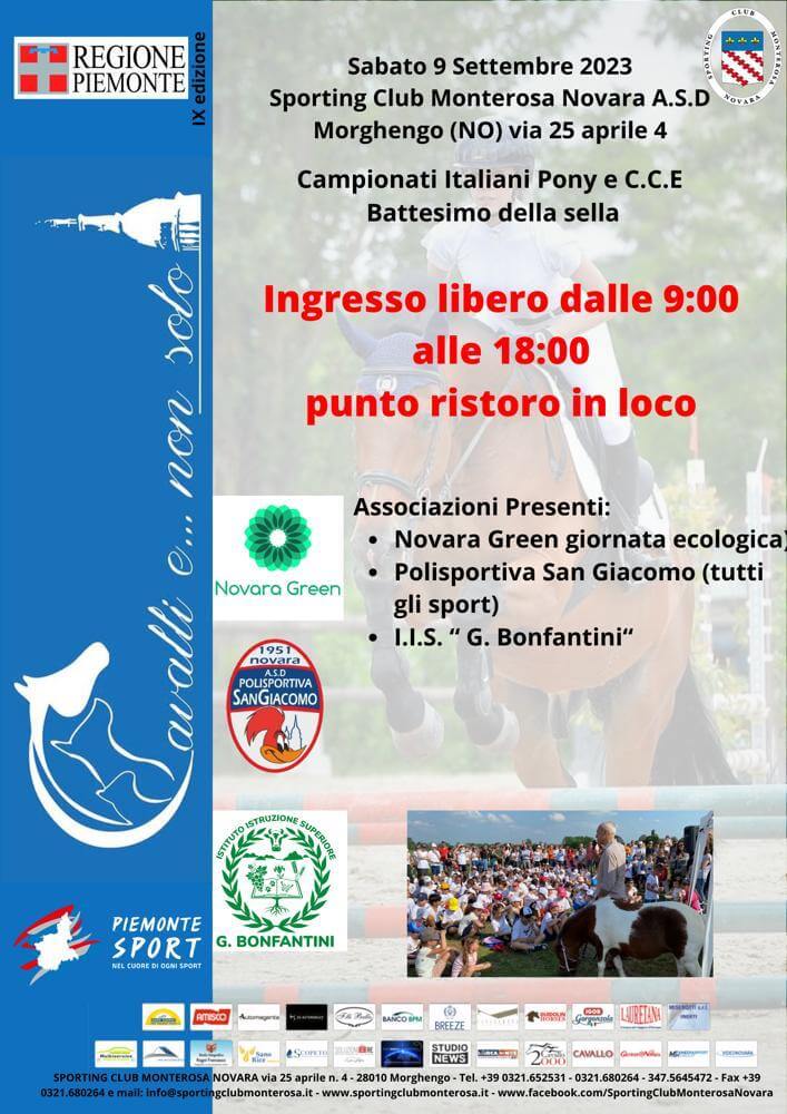 Domenica 10 settembre. Un grande weekend con lo sport e l’attesa per la IX edizione di “CAVALLI E…NON SOLO”. Un appuntamento speciale dedicato ai bambini, alle famiglie e alle competizioni sportive, in questo fine settimana riservato ai Campionati Italiani di Completo Pony. Il grande sport, ancora una volta protagonista assoluto nelle splendide campagne novaresi, trova per questo appuntamento il sostegno della Regione Piemonte per promuovere le principali attrazioni turistiche dei territori piemontesi.