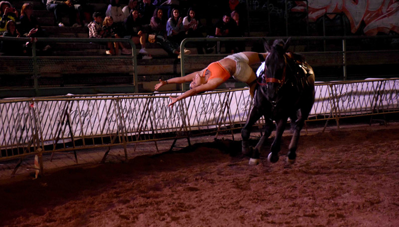 Ad aspettare la Mostra Nazionale del Cavallo c’è un mondo equestre per il quale Città di Castello continua a rappresentare una tappa importante: lo dimostra la partecipazione della Fanfara a Cavallo della Polizia di Stato, la cui presenza è stata concessa agli organizzatori dal Ministero dell’Interno; lo dimostra la parata dei migliori artisti internazionali che si sono dati ancora una volta appuntamento per il gala serale insieme a Nico Belloni e Bartolo Messina, tra i quali hanno veramente entusiasmato i volteggiatori Andrea e Gianluca Galuppi, insieme a Sara Nuti; lo dimostra la sfilata di stelle dello sport in scena per il pubblico tifernate e sulle tribune dell’anfiteatro, dalla pluricampionessa italiana ed europea di working equitation Sofia Bacioia all’umbra Vittoria Laliscia, campionessa italiana di ginnastica ritmica, che ha partecipato alla serata finale della Mostra del Cavallo con un numero inedito insieme a Martina Fiorucci, sotto gli occhi della sorella Costanza, l’atleta italiana più vincente nell’Endurance a livello internazionale, e del padre Gianluca, che è stato campione del mondo della stessa disciplina; lo dimostra l’attenzione di personaggi di riferimento per tutto il settore, come il pluridecorato allevatore di Assisi Sergio Carfagna, titolare di una importante scuderia di livello internazionale di cavalli da trotto e stalloni come Iglesias, che sabato ha visitato la manifestazione.