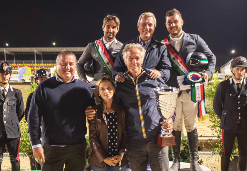 A dominare la classifica a squadre dell’ultima tappa dell’Italian Champions Tour – prima del Final Event di Jumping Verona – sono stati i siciliani Gabriele e Giuseppe Carrabotta. Fratelli nella vita e perfetti compagni di squadra in campo, hanno portato la Banca del Fucino Jumping Team sul gradino più alto del podio grazie a due percorsi netti in sella alle loro baie Faluky e Hangover.