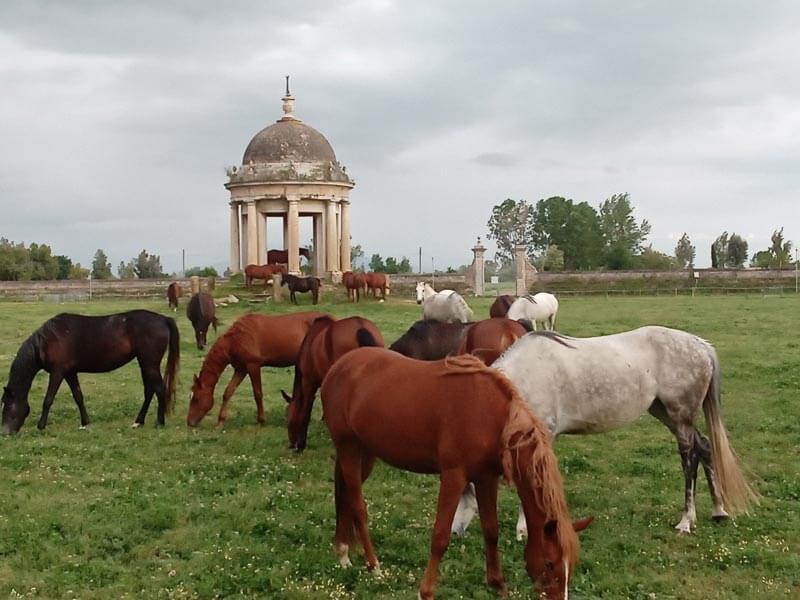 Alimentazione saltuaria, mancata cura delle lettiere, nessun intervento di mascalcia, due stalloni e due puledre appena nate morti un anno fa, cavalli rinchiusi da più di un anno nelle scuderie senza accesso agli ampi pascoli della tenuta – 24 ettari a San Tammaro, Caserta – al centro della quale spicca l’imponente complesso progettato da Francesco Collecini: la residenza reale, contornata dal complesso di scuderie, maneggi coperti, locali di servizio, magazzini, e impreziosita dal primo ippodromo d’Italia, l’unico al mondo a essere inserito all’interno di una residenza reale.