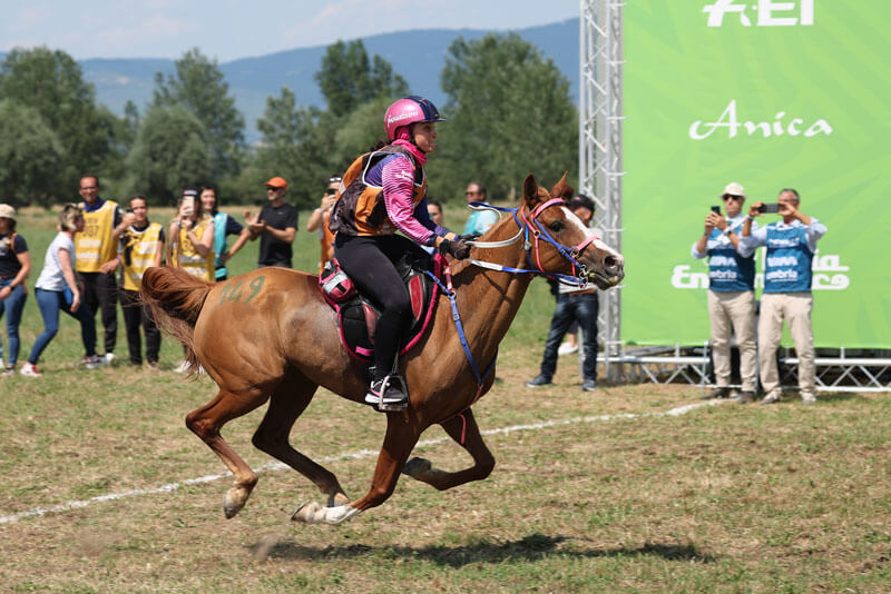 Per la categoria di Young Rider CEIYJ2* sulla distanza di 120 km, si aggiudica la medaglia d’oro Caterina Coppini (Veneto) che in sella a Zingara chiude alla media di 17,948 km/h; l’argento va ad Arianna Lanza (Lazio) su Tiziu di Gallura (17,947 km/h) e il bronzo all’umbra Greta Bistoletti, un’altra amazzone del Fuxiateam di Italia Endurance Stables & Academy, che ha corso su Demon Melograno tagliando il traguardo alla media di 17,945 km/h.