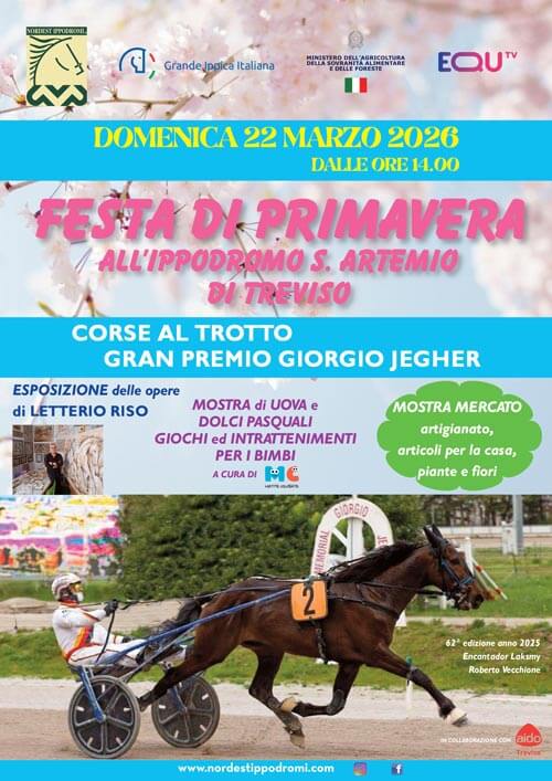 Domenica 22 marzo Nordest Ippodromi inaugura la stagione primaverile con una giornata densa di attività proponendo un convegno di corse al trotto arricchito dalla disputa del Gran Premio Giorgio Jegher e dalla prima edizione della Festa di Primavera.
