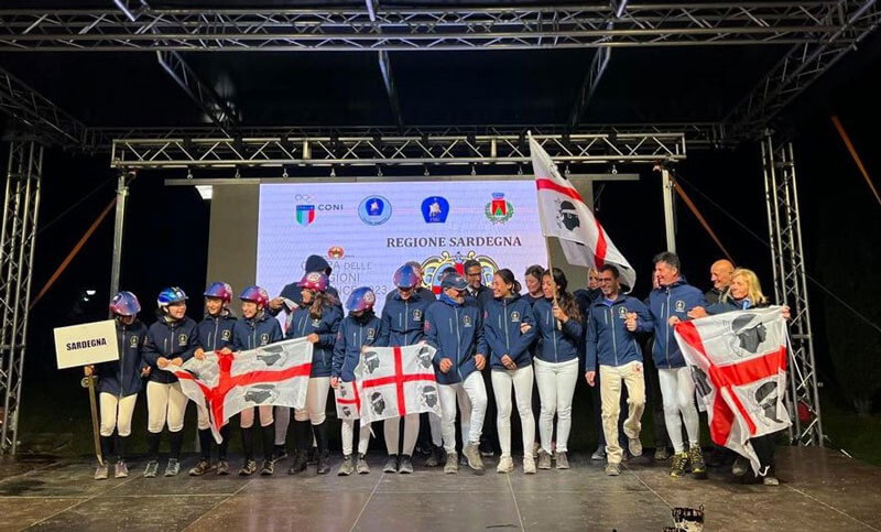 Martina Lo Monaco in sella a Prestigiosa si è classificata al quinto posto. Marina Cimino su Romeo è arrivata ottava e Serena Pintore in sella a Tesoro del Golfo ha chiuso al 18° posto. Peccato per Rebecca Cuccuru, su Tufu de Su, eliminata per andatura non conforme ai parametri. I risultati delle tre amazzoni consentono alla Sardegna di figurare come terza regione alle spalle di Veneto e Lazio.