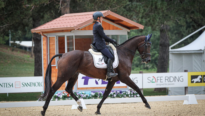 Nella giornata odierna, il rettangolo del Mondiale dei Pratoni 2022 ha visto in gara ben tre binomi azzurri: Arianna Schivo/Quefira e Marco Cappai/Uter per la squadra e Evelina Bertoli con Fidjy des Melezes a titolo individuale.
