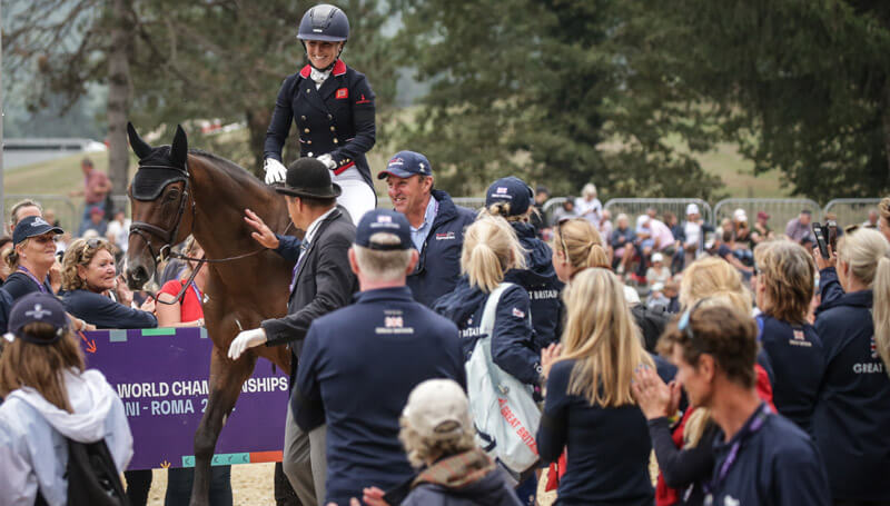 Gran Bretagna padrona nella prima giornata del dressage ai FEI World Championships di concorso completo ai Pratoni del Vivaro 2022.