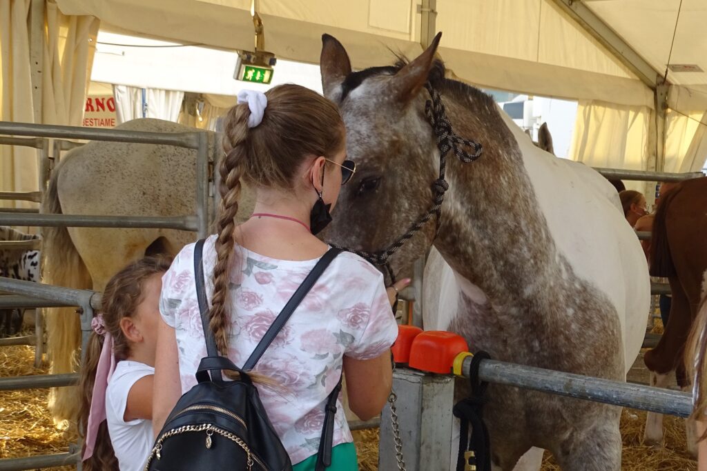 Nella Ranch Sorting, invece, la coppia dei cavalieri ha quale obiettivo quello di spostare un capo alla volta da un recinto ad un altro. Bistrattato da un detto ‘popolare’ che non rispecchia la realtà, l’Associazione tutela asini bergamaschi (Atab) porta in fiera un bel gruppetto di esemplari, molto mansueti, obbedienti e con grandi capacità di apprendimento: caratteristiche che rendono l’asino perfetto per la pet therapy che le vede protagonista (Onoterapia), dedicata in particolare alle persone con fragilità.