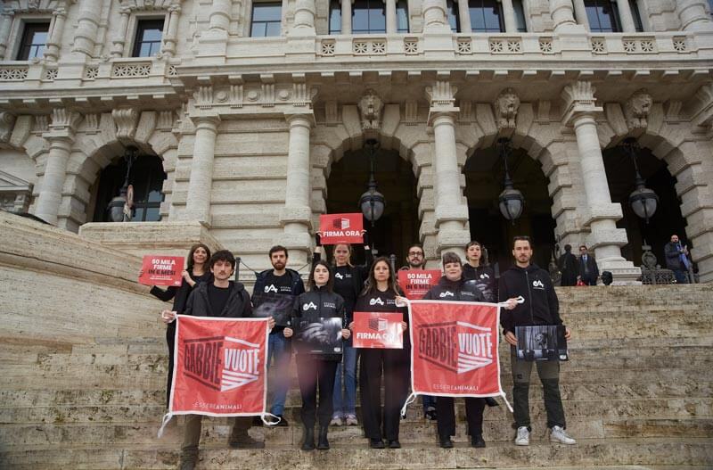 L’associazione ha depositato in Cassazione una proposta di legge d’iniziativa popolare per introdurre un divieto all’uso delle gabbie a livello nazionale per tutte le specie allevate, con l’obiettivo di chiedere formalmente al Parlamento di discutere e avviare un percorso legislativo su questo tema, come già avvenuto in altri Paesi membri dell’UE.