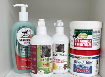 Allenamenti e lunghe passeggiate mettono sotto pressione muscoli e tendini dei cavalli che possono ricevere un naturale sollievo rinfrescante e tonificante dall’arnica presente in creme e gel.