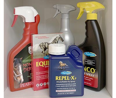 In estate non può mancare un prodotto che allontana gli insetti. Si possono scegliere PMC registrati al Ministero della Salute come Bronco, Tri-Tec, Equi-spot, Repel-X oppure prodotti naturali come le lozioni a base di citronella, tra tree e neem.