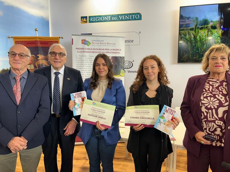 Nell’ambito del Premio – intitolato da Angelo Pasi alla moglie Carla Guglielmi, scomparsa nel 2016, stimata docente dell’istituto tecnico Pasoli di Verona appassionata di cavalli e da sempre in prima linea per aiutare i giovani con disagio fisico o sociale – sono state attribuite anche due menzioni speciali: a Matilde Lenelli, con la tesi «Il ruolo del TNPEE nell’intervento di Terapia Assistita con il Cavallo: case report di un bambino con Disturbo dello Spettro Autistico», discussa all’Università degli Studi di Milano, e a Francesca Lion, con l’elaborato «Terapia Assistita con il cavallo a supporto del trattamento di Terapia Occupazionale per bambini con diagnosi di Disturbo dello Spettro Autistico: una proposta di intervento», discussa all’Università degli studi di Padova.