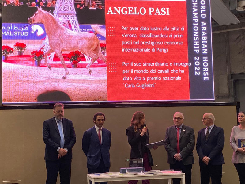 BENEFATTORE PLURIPREMIATO. Purosangue allevati con impegno e tanto amore, nel ricordo di Carla, che stanno regalando enormi soddisfazioni al proprietario ma non solo. Tanto che dopo il successo ottenuto lo scorso novembre anche al «World Arabian Horse Championship» di Parigi, Veronafiere ha voluto insignire Pasi di un premio per il lustro che i suoi cavalli, in concorso ogni anno con ottimi risultati anche a Fieracavalli, donano alla rassegna veronese e a tutto il sistema allevatoriale italiano. Il riconoscimento è stato consegnato a Pasi da Federico Bricolo, presidente di Veronafiere, ed Eugenio Grimaldi, presidente Alis per il sociale, nel corso di Let Expo, l’innovativa fiera su logistica sostenibile, trasporti e servizi, che si è appena conclusa proprio a Veronafiere e che ha ospitato un padiglione con focus su sociale, solidarietà, sport ed inclusione.