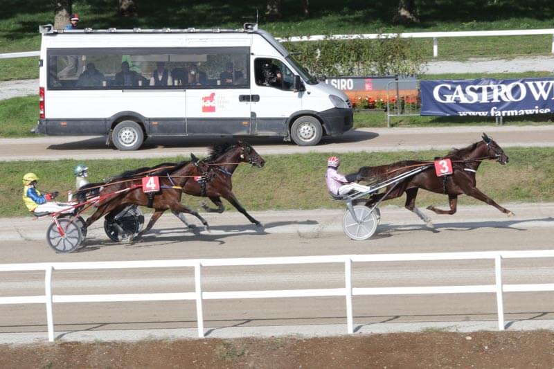 L’altro spunto di interesse del pomeriggio era il “debutto” del Trotto Montato sulla pista di San Siro: nel Premio Paris Roc faceva la parte del leone lo start, con la “lepre” Carisma Av che con un chilometro alé alé “lanciava” ai 600 metri finali la progressione di Jeoffrey: l’importato allenato da Holger Ehlert e montato da Luca Messi vinceva spaziando a media di 1.15.7 sui 2120 metri, mentre a intervallo una diligente Zafira teneva a bada Amore Stecca per il secondo posto. In errore il doppiamente penalizzato Solcio Zl, quarto ma mai nel vivo Zeppelin Man che si avviava al nastro intermedio.