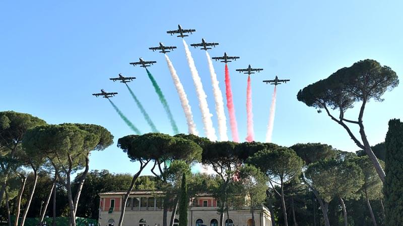 Le Antiche Tribune sono sold out già da mezzogiorno e i prati adiacenti l’Ovale sono la comoda alternativa ‘green’. D’altra parte l’appuntamento con la Coppa delle Nazioni in una tipica giornata di sole romana, è troppo bello per non viverlo fino in fondo. La prima grande emozione arriva con l’Aeronautica Militare alle 13 e 30 in punto, quando le Frecce Tricolori, appena dopo l’Inno di Mameli, disegnano il cielo di verde, bianco e rosso attraversando lo spazio sopra Villa Borghese. In tribuna autorità, il colpo d’occhio è tra le alte uniformi dell’Aeronautica e non solo che si alternano agli abiti scuri degli ospiti. Poi spazio ai cavalieri: è il momento della Coppa delle Nazioni.