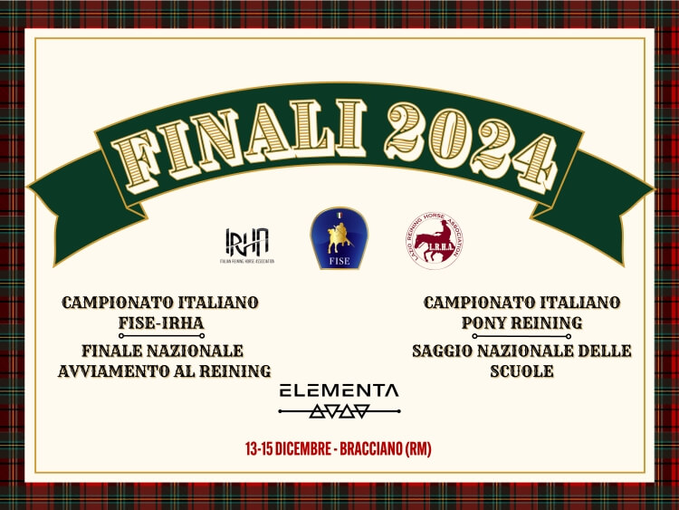 Le FINALI CAMPIONATI ITALIANI DI REINING, la terza edizione della FINALE NAZIONALE AVVIAMENTO AL REINING, la prima edizione del CAMPIONATO ITALIANO PONY REINING, la prima edizione del TROFEO DELLE REGIONI e la quarta edizione del SAGGIO NAZIONALE DELLE SCUOLE REINING della stagione agonistica 2024 – organizzate da LRHA Lazio Reining sotto l’egida IRHA e FISE – si svolgeranno nei giorni 11-12-13-14-15 DICEMBRE 2024 presso “ELEMENTA” – Strada poderale del Sambuco 14, 00062, Bracciano (RM)