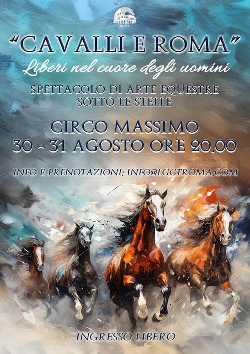 ROMA – Torna in scena al Circo Massimo “Cavalli e Roma”, lo spettacolare show equestre che venerdì 30 e sabato 31 agosto accenderà le notti romane del Longines Global Champions Tour di Roma. Nell’ambito del prestigioso circuito internazionale di salto ostacoli in programma dal 30 agosto al 1° settembre, il Circo Massimo sarà teatro di una nuova emozionante edizione dell’ormai tradizionale appuntamento serale al Palatino che quest’anno si intitolerà “Liberi nel cuore degli uomini”, spettacolo curato da Sabina Domanico, Serena Veri e Alessandro Volpi con la regia di Umberto Scotti.