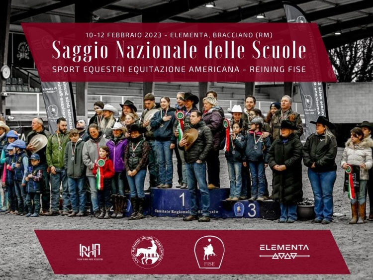 Coordinato ancora una volta dal prodigo team della LRHA Lazio Reining, la seconda edizione del SAGGIO NAZIONALE DELLE SCUOLE SPORT EQUESTRI EQUITAZIONE AMERICANA – REINING FISE, tenutosi dal 10 al 12 febbraio scorsi presso gli impianti ELEMENTA di Bracciano a Roma, ha visto ancora una volta il trionfo della Scuderia FISCI TEAM del Piemonte.