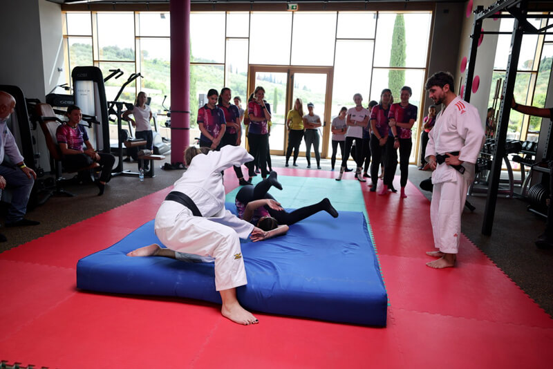 Una delle novità più apprezzate della giornata è stato lo stage “Judo a cavallo”, diretto dal Maestro 6° Dan Augusto Mariotti della F.I.J.L.K.A.M e dalla campionessa Costanza Laliscia. Un’esperienza inedita e altamente formativa, che ha permesso ai cavalieri e alle amazzoni partecipanti di apprendere le tecniche di caduta sicura ispirate al Judo, conosciute come Ukemi. L’obiettivo era insegnare ai partecipanti la corretta esecuzione delle cadute da cavallo con una lezione innovativa che ha saputo coniugare sapere e divertimento nella palestra della scuderia del Fuxiateam.