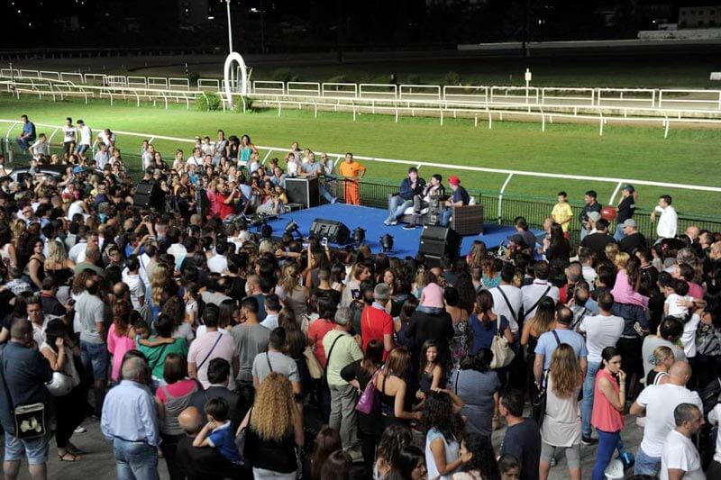 In pista le corse di trotto in notturna, nel parco l’area show Radio Marte in diretta radio e tv con tanti ospiti canori giovani e big, sul palco per presentare i dischi dell’estate 24.
