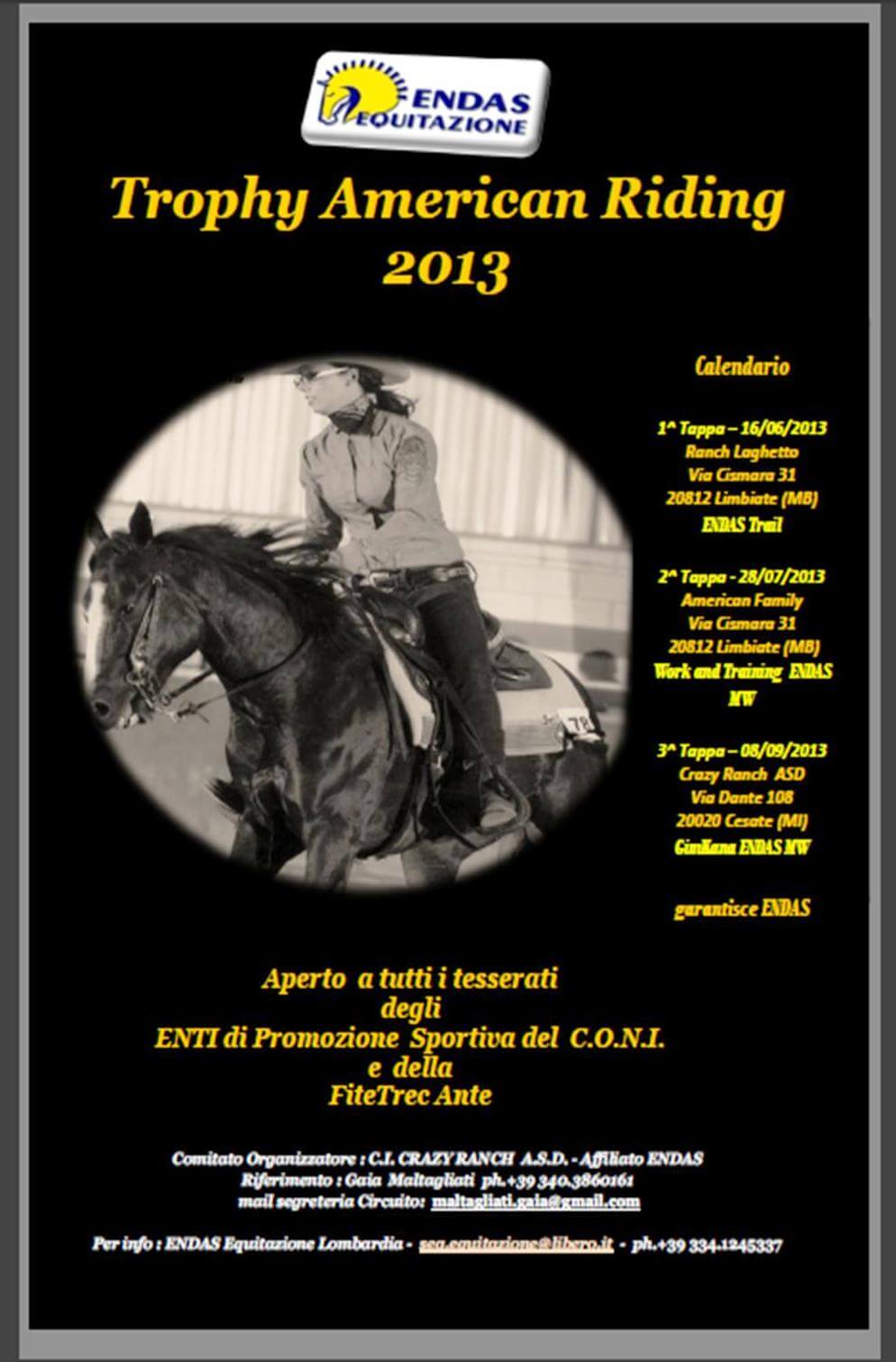 Ideato e sviluppato dal Settore Formazione di ENDAS Equitazione e fortemente voluto dal Neo Responsabile del Settore di Equitazione Americana anche quest’anno si è puntato sul Circuito “TROPHY AMERICAN RIDING” ma con una formula rinnovata come richiesto dagli addetti ai lavori.