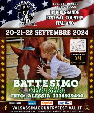 Giunto alla sua nova edizione, Il Valsassina Country Festival, da qualche anno si aggiudica il titolo di “più grande festival Country” sul territorio italiano. L’evento si svilupperà su un’area di 100.000 m2, di cui ben 4000 coperti. Fortemente voluto e promosso dai Volontari della Parrocchia S. Alessandro di Barzio, il festival si pone come obiettivo la diffusione della cultura country americana in una festa di colori, emozioni e tradizioni per rivivere le scene e respirare le atmosfere più calde del selvaggio West, che non sono poi così lontani dal vivere quotidiano in questa terra.