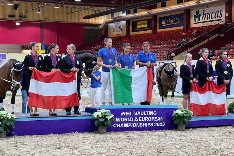 Arriva un bellissimo oro per l’Italia dai Campionati del Mondo Junior di Volteggio che si sono chiusi oggi, domenica 30 luglio, a Flyinge in Svezia. Dopo il bronzo conquistato da Giorgia Varisco nella categoria individuale femminile nella giornata di ieri è stato il pas de deux azzurro a conquistare il metallo più prezioso. A metterlo al collo è stata ancora Giorgia Varisco, che così conquista la sua seconda medaglia d’oro iridata, in coppia con Greta Gemignani. Entrambe le giovani atlete azzurre hanno volteggiato su Rosenstolz 99 e alla longia di Laura Carnabuci.